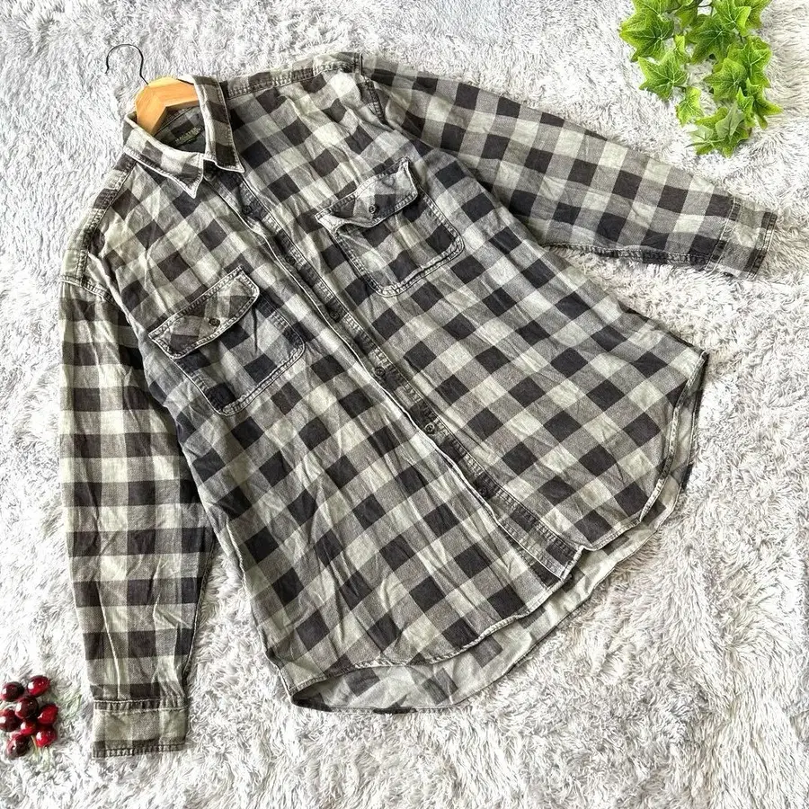 체크 무늬가 멋스러운 긴팔 셔츠 ✨ 빈티지 느낌의 질감으로 코튼 100%인 점이 기쁜 포인트 ♪ 평상복으로도 가벼운 작업옷으로도 부담 없이 사용할 수 있는 일품입니다 ♡