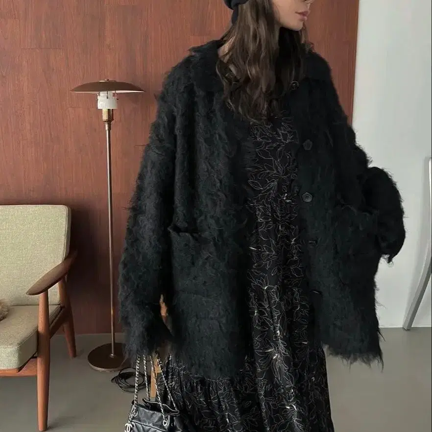 멜란지 푸들 얀에 기모를 더한 니트 가디건