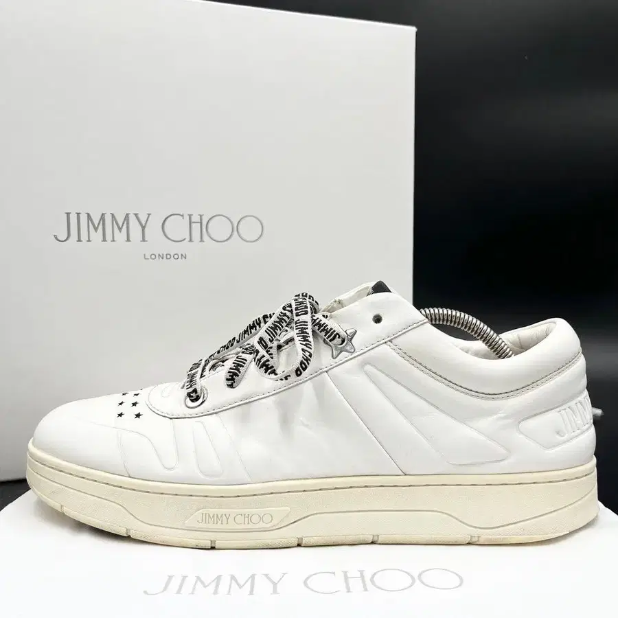 JIMMY CHOO 지미추 하와이 엠보싱 가죽 로고 슈레이스 화이트 남성용 스니커즈 신발 26cm 상당
