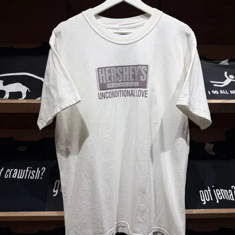 초콜릿 브랜드로 유명한 하ーシーズ의 프린트 티셔츠입니다.