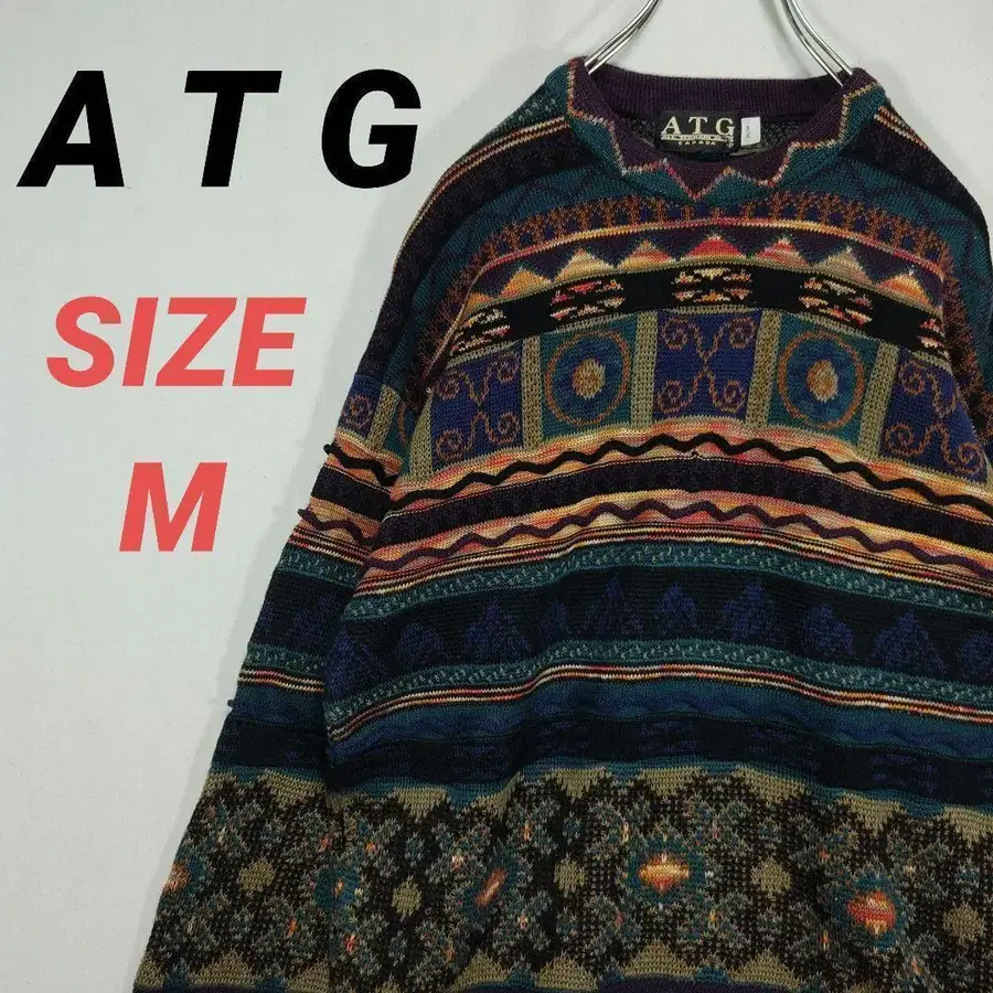 ATG 빈티지 3D 입체 니트 스웨터 남성용 멀티 컬러