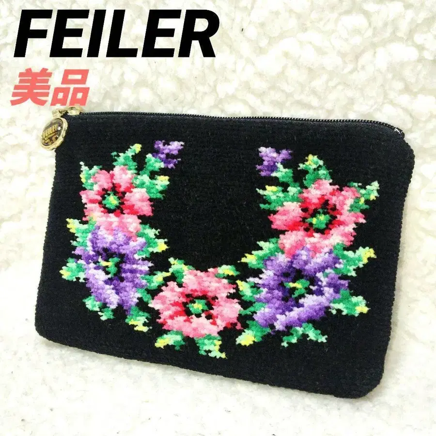 새상품급 FEILER 페이러 꽃무늬 미니 파우치 슈니르 직조 블랙