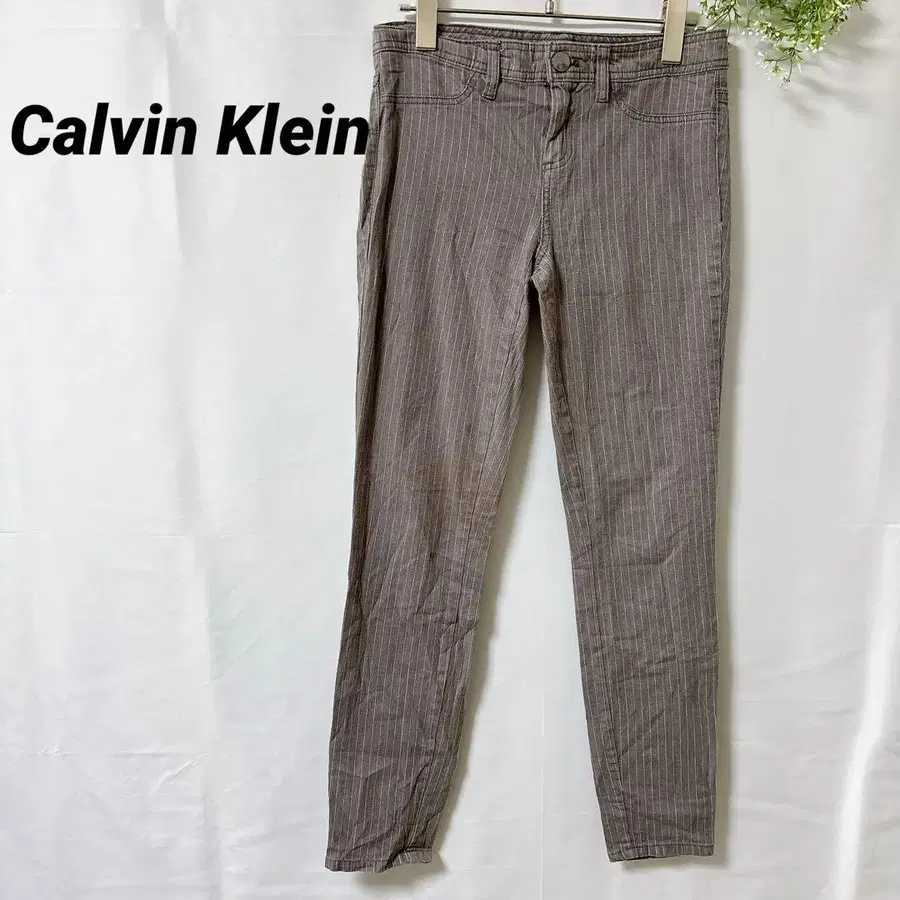 자동 번역되었어요. 원문보기그레이 스트라이프 디자인의 슬림핏 팬츠.