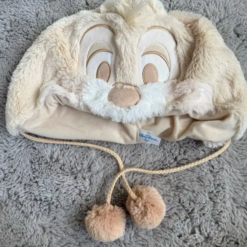 칩과 데일 팬캡 크림색에 폼폼이 달린 제품입니다. 데일의 팬캡입니다. 한 번 사용 후 수납 박스에 보관했습니다.