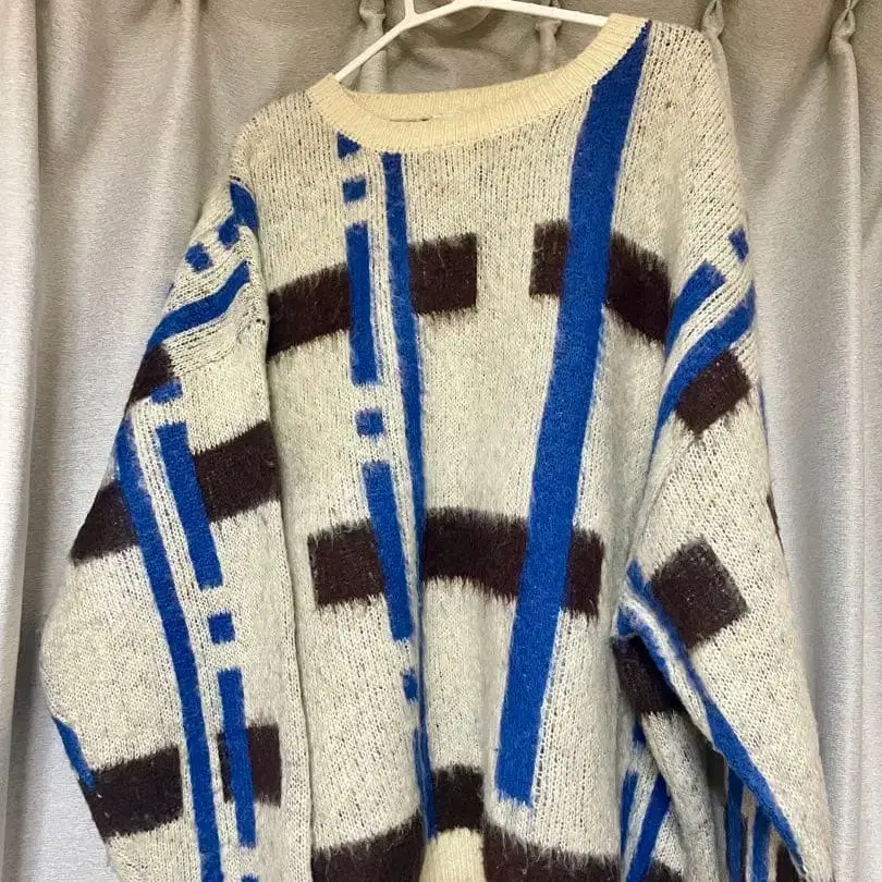 ONCLY 체크 패턴 샤기 니트