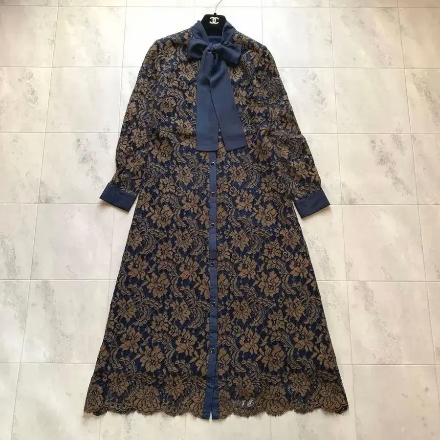 2022년 모델 컬러 배색 레이스 보타이 원피스