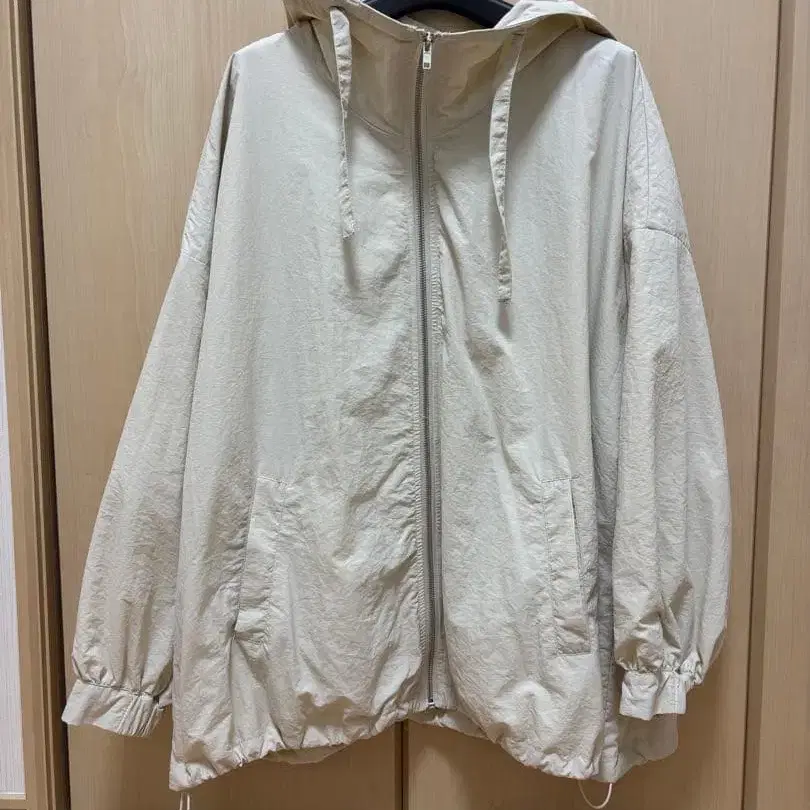 아이보리 후드 부착 오버 사이즈 자켓
