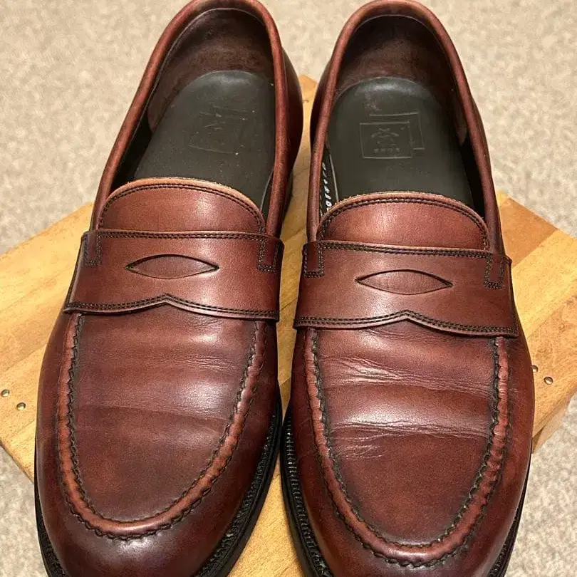 발꿈치 부분에 밑창 마찰이 보입니다. 발가락 근처에 약간의 흠집이 있습니다. 모양이 망가진 곳은 없으며, 신발 주름도 아직 얕은 편이라고 생각합니다. 발을 단단히 감싸주는 구조 덕분에 걸을 때도 발꿈치가 빠지기 어렵습니다.