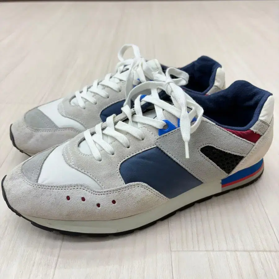 1990년대 프랑스군에서 트레이닝 슈즈로 채용되었던 통칭 [ 프렌치 트레이너 ]. 군용 신발을 생산하던 팩토리에 의뢰하여 당시 사용되었던 틀을 베이스로 하나하나 정성스럽게 핸드메이드로 생산되었습니다. 트레이닝 슈즈인 만큼 편안하고 쾌적한 착용감이 매력입니다. 독특한 커팅은 뛰어나며, 균형 잡힌 배색 패턴도 인상적입니다. 데님, 캐주얼 팬츠는 물론, 깔끔한 팬츠와도 궁합이 좋습니다. 다양한 스타일에 올 시즌 착용 가능한 아이템입니다.