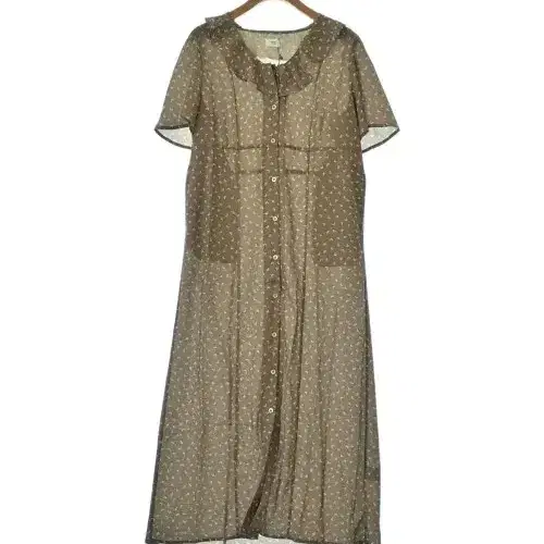 [ 실측치수(cm) ] 가슴 너비:44.5cm, 어깨 너비:35cm, 소매 길이:22cm, 기장:129.5cm