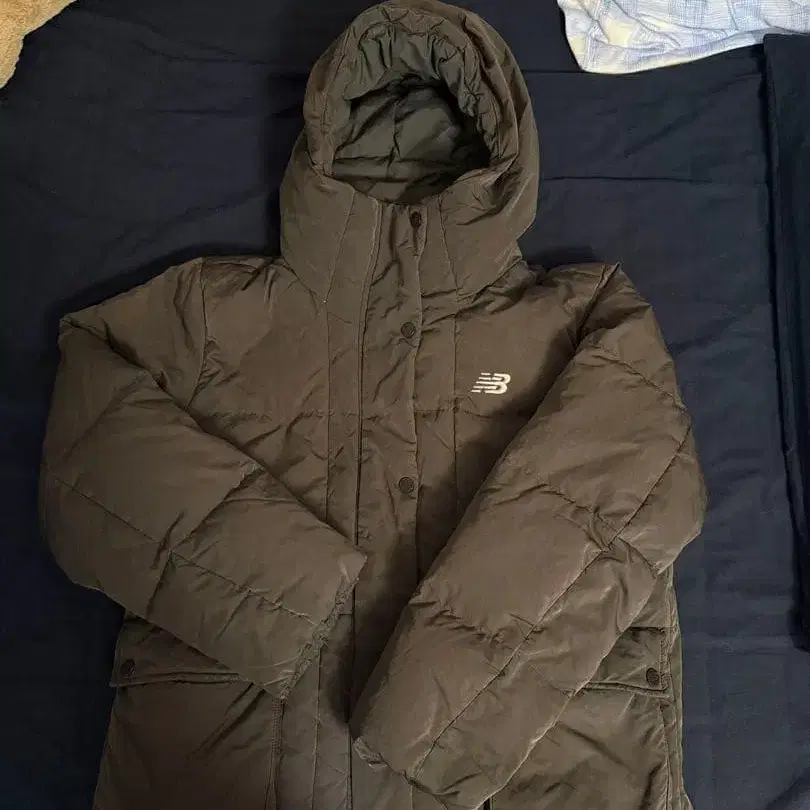 New Balance 후드 부착 다운 자켓 다크 그레이