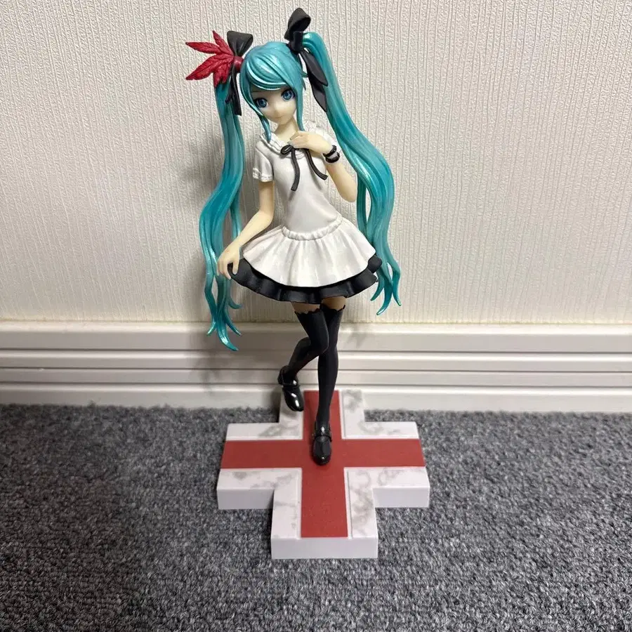 하츠네 미쿠 피규어, 화이트 블라우스와 블랙 스커트 의상, 트윈 테일의 스카이블루 머리. - 캐릭터명: 하츠네 미쿠 - 의상: 화이트 블라우스와 블랙 스커트 - 머리 색깔: 스카이블루 - 헤어스타일: 트윈 테일 - 부속품: 스탠드 ( 십자가형 ) 방문해 주셔서 감사합니다.