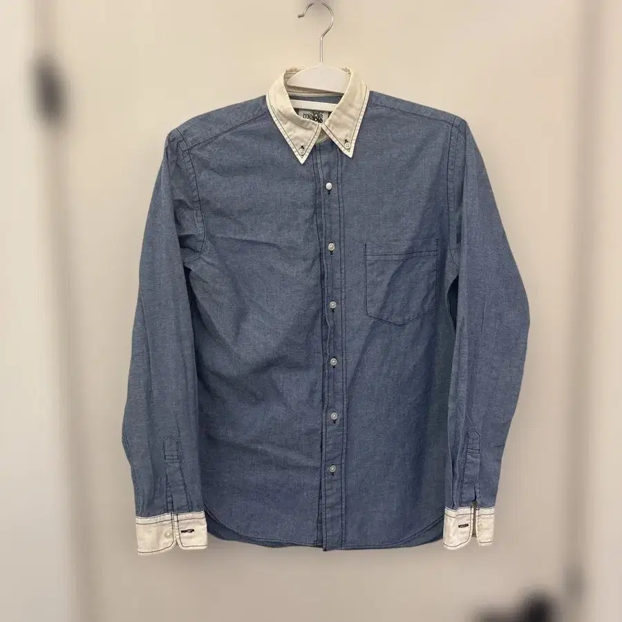 자동 번역되었어요. 원문보기샴브레이 긴팔 셔츠, 카라 부착, 스타일리시한 디자인.