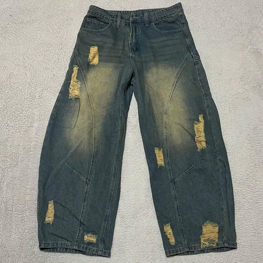 스트릿 스타일 데미지 가공 카고 와이드 팬츠