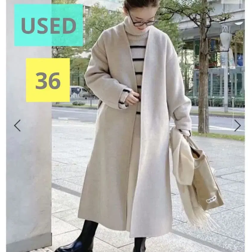 IENA 이예나 MANTECO PURE 더블 페이스 코트 사이즈: 36 컬러: 아이보리 착용 횟수 7~8회, 클리닝 완료 약간의 보풀이 있지만, 눈에 띄는 흠집이나 얼룩은 없는 것 같습니다. ※ USED 상품이며, 자택 보관 중인 상품임을 이해하시고 구매 부탁드립니다. 얼룩이나 흠집 유무 등은 확인하였으나, 어디까지나 개인의 검품이므로 놓친 부분이 있을 수 있습니다. 완벽을 추구하시는 분은 구매를 삼가해 주시기 바랍니다. [ 거래 관련 주의 사항 ] ● 반품 및 교환은 불가하오니, 신중히 검토 후 구매해 주시기 바랍니다. ● 자택 보관 상품이므로, 보관 시 냄새나 주름이 있을 수 있습니다. ● 보고 계신 모니터의 기종이나 환경에 따라 색감이 다르게 보일 수 있습니다. ● 접어서 발송합니다. 접은 주름은 양해 부탁드립니다. ● 구매 전 프로필 확인을 잘 부탁드립니다. [ 상품 설명 ] 이탈리아 MANTECO사 원단의 코트입니다. MANTECO사의 신소재로 안감이 없는 더블 페이스 코트를 만들었습니다. 더블 페이스 코트는 원단 2장을 겹쳐 만든 정성스러운 고급 코트입니다. 명품 브랜드에서도 자주 채용하는 고급스럽고 재단이 돋보이는 코트입니다. 이 상품은 기모 가공된 원단을 사용하여 원단 속에 따뜻한 공기를 머금고 있어 가벼우면서도 바람을 통하지 않아 보온성이 뛰어나 한겨울에도 착용 가능합니다. 지금까지도 가벼움으로 정평이 나 있는 MANTECO사 원단이지만, 더블 페이스 안감 없음 사양으로 하여 가벼움과 보온성, 소재의 장점을 최대한 살린 코트입니다. 디자인은 릴랙스한 분위기의 노카라 디자인에 벨트가 있어 허리 부분을 강조하여 더욱 페미닌한 실루엣을 즐길 수 있습니다. 여유 있는 실루엣으로 한겨울에는 두꺼운 니트와 레이어드하여 착용할 수 있습니다. 색상 전개는 무지가 3가지, 멜란지가 1가지입니다. 멜란지 상품은 원단 제법이 다르며, MANTECO사에서 리사이클한 재생 울을 사용한 지속 가능한 원단입니다. (따라서 무지 상품과는 혼용률이 다릅니다.) 모든 상품은 유연하고 아름다운 기모 가공이 특징이므로, 매일 브러싱하여 관리해 주시면 더욱 깨끗한 상태를 유지할 수 있습니다. 가운 롱 기장 맥시 길이 벨트 허리 리본 허리 강조 플레어 A 라인 슬릿