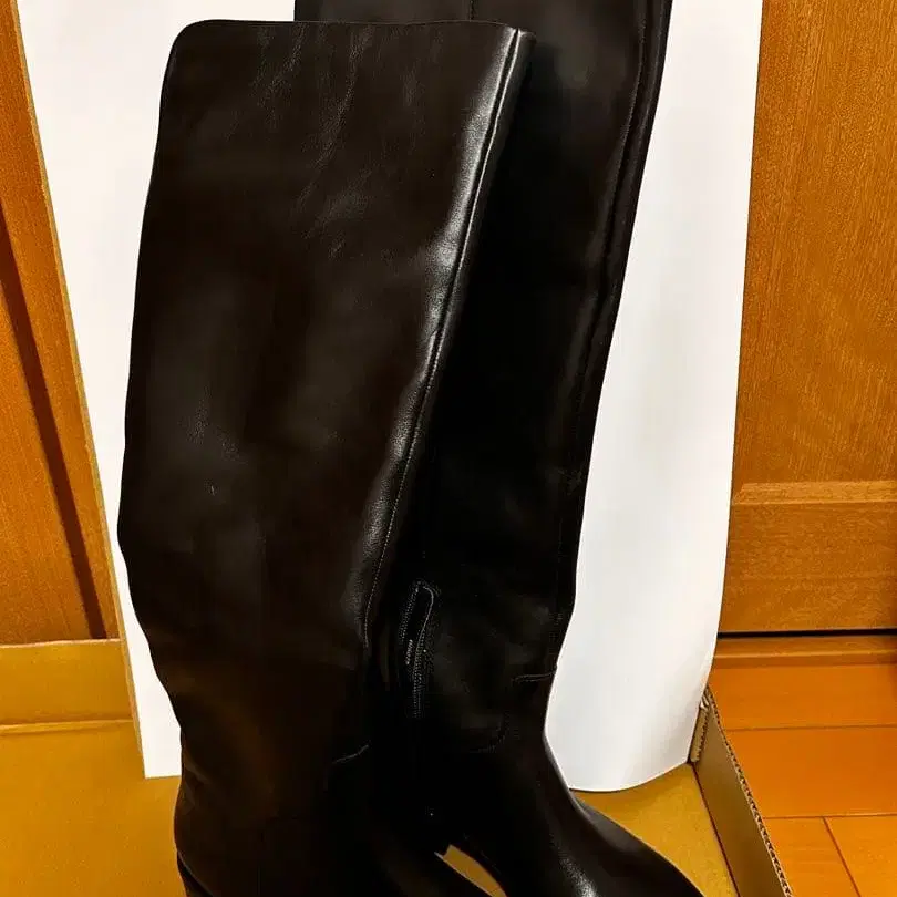 • 블랙 가죽 니하이 롱 부츠 24.5cm