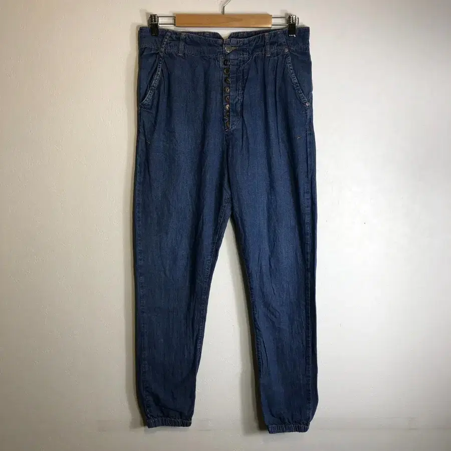 하이웨스트 디자인의 슬림핏 데님 팬츠. - 색상: 파랑 - 디자인: 버튼 플라이 - 스타일: 하이웨스트 - 포켓: 앞 포켓 있음 - 핏: 슬림핏 방문해 주셔서 감사합니다. ○ 사이즈 사이즈 표기 M 허리 81.0cm, 힙 102.0cm, 밑위 39.0cm, 인심 62.0cm ※ 평평하게 놓았을 때 실측입니다. ○ 상태 새상품급 ○ 색상 블루 ※ 사진의 촬영 환경이나 사용하시는 단말기에 따라, 현물과 색감이 다를 수 있으니 양해 후 구매 부탁드립니다. ○ 배송 최대한 간편 포장하여 1~2일 내로 발송합니다. 사정에 따라 지연될 수 있으니 양해 부탁드립니다. 사진에 보이는 행거 등은 부속품이 아니므로 미리 양해 부탁드립니다. 구제 의류 상품이므로, 이해해 주시는 분께 잘 부탁드립니다. 구매 전에 프로필을 확인해 주세요. 비고: 빈티지 안쪽 택 없음