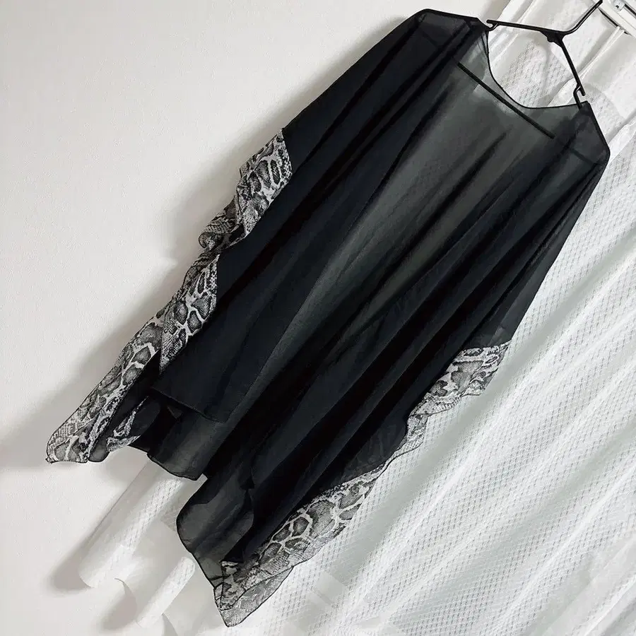 스네이크 프린트 트리밍 가디건 블랙 시스루 루즈핏