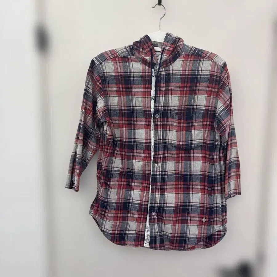 메이플 melple 후드 부착 체크 무늬 7부 소매 셔츠 L 사이즈