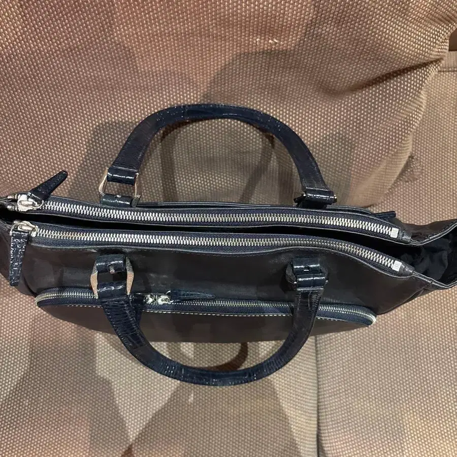 더블 지퍼가 악센트인, 내추럴한 느낌의 숄더 토트백.