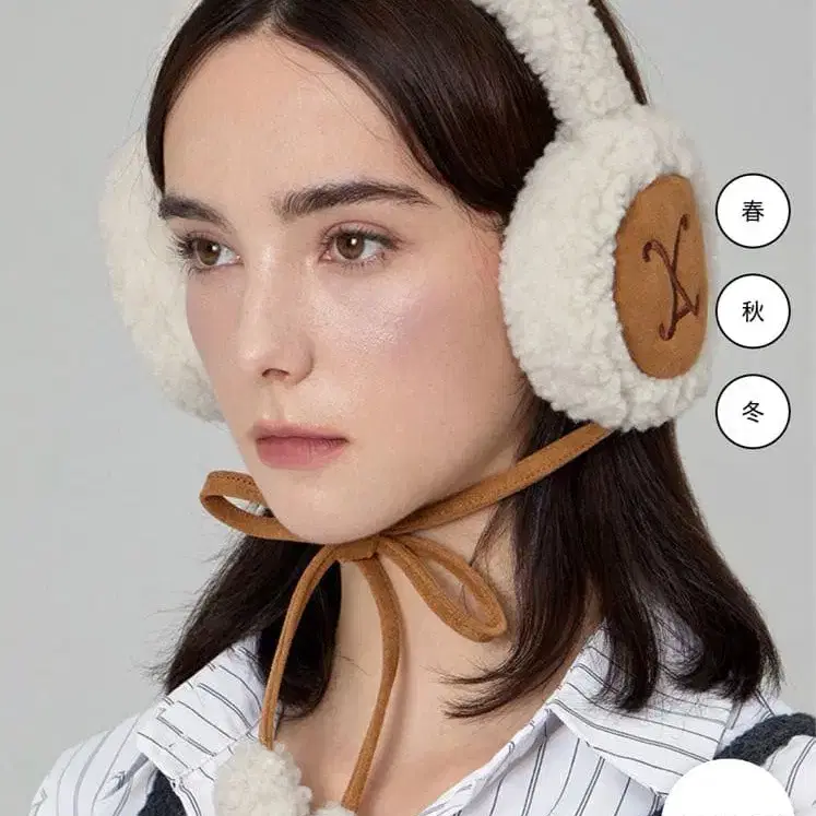 크림색 퍼 소재로, 로고와 리본이 특징인 캐주얼한 귀도리입니다. - 색상: 크림 - 소재: 퍼 - 디자인: 로고 포함 - 스타일: 캐주얼 - 특징: 리본 포함 방문해 주셔서 감사합니다.