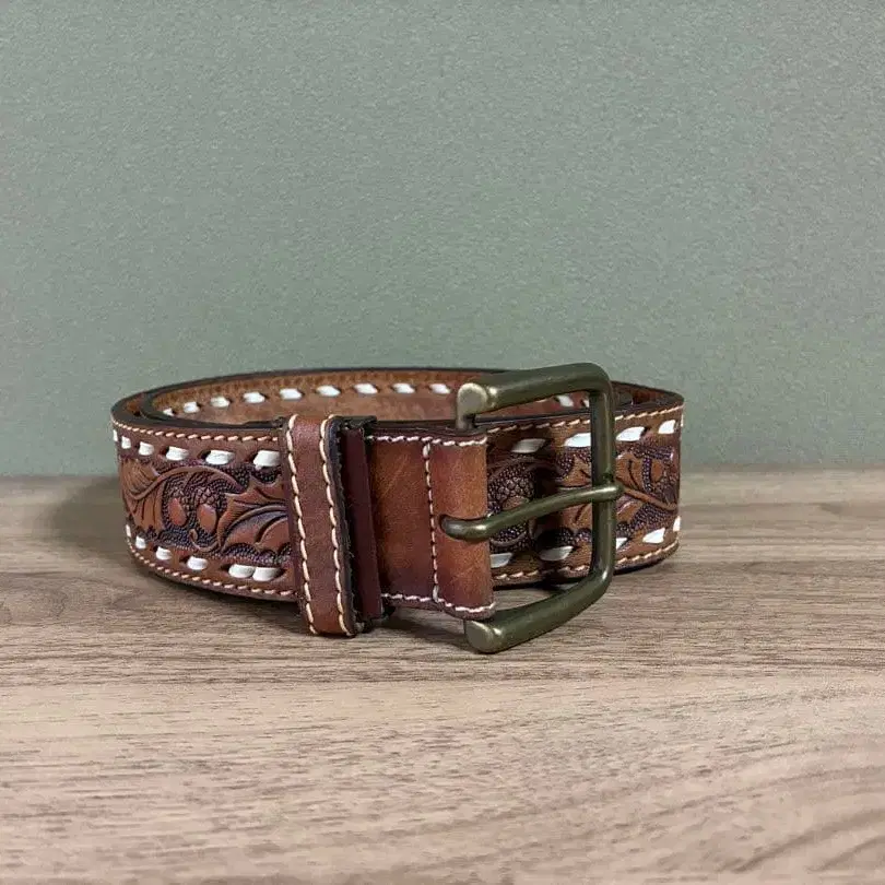 남성용 아메카지 빈티지 벨트 usa 브라운 미국제 천연 가죽 90s