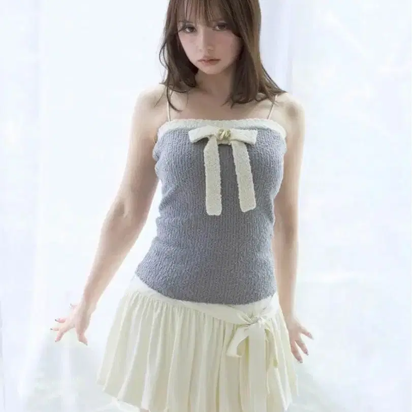 [ 새상품 ] 앙드마리 Bicolor ribbon tops white