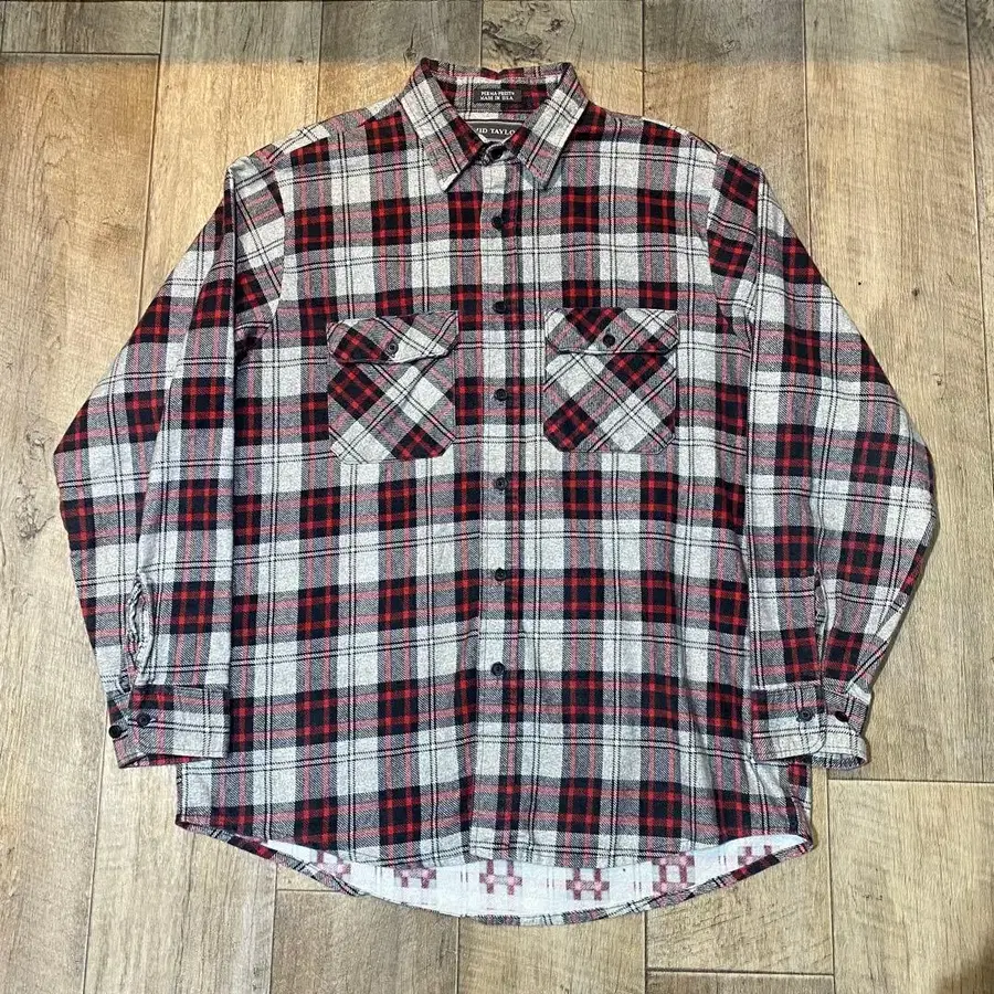 90s DAVID TAYLOR 프린트 플란넬 셔츠 L USA제