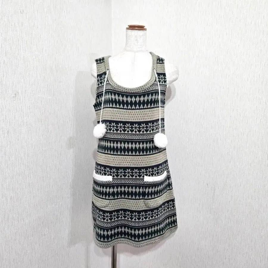 FIRST REVUE 노르딕 무늬 니트 오버롤 스커트 M