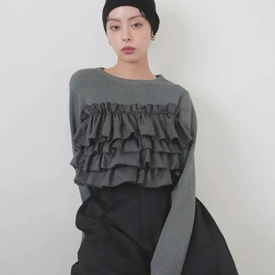 프릴 뷔스티에 니트 풀오버 도킹 디자인 니트 그레이 LIAN