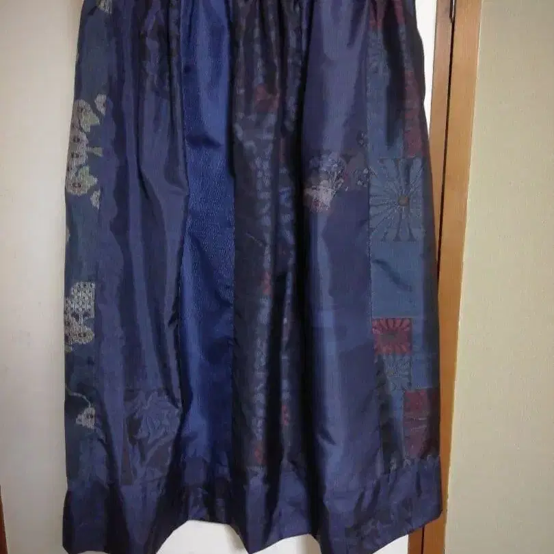 기모노 리메이크 스커트 (오시마 명주 리메이크 네이비 무늬 롱 스커트)