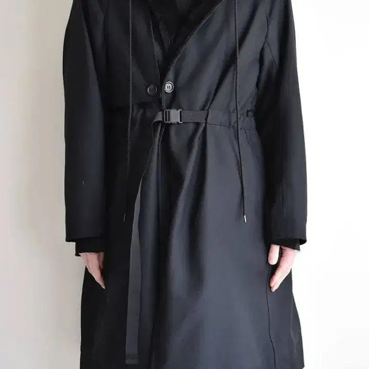 프론트는 겹쳐 입는 버튼 사양이며, 부속 벨트로 허리를 조여 착용할 수 있습니다.