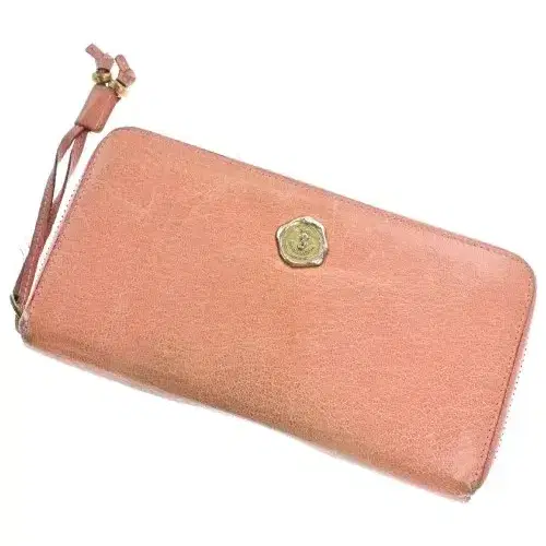 • 마이클코어스 장지갑 라운드 지퍼 핑크 베이지 로고 금장 장식