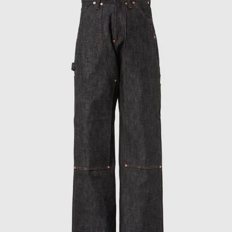 MODERN DENIM PANTS PAINTER 사이즈 32 2025 SPRING & SUMMER COLLECTION 'ELEPHANT' MODERN DENIM SERIES의 신형, 페인터 타입의 더블니 데님 일반적인 데님 원단은 인디고 염색한 세로실과, 염색 가공을 하지 않은 생지색의 씨실을 사용하여 짜지만, 라이트 베이지로 염색한 씨실을 넣어 색의 교차에 깊이를 연출 가장 특징적인 점은, 왼쪽 능으로 제직하고 있다는 점 왼쪽으로 꼬인 실에 대해, 왼쪽 능으로 제직함으로써 실의 꼬임이 단단해지고, 골(능목)이 서서, 오른쪽 능의 거친 인상과 비교하면, 왼쪽 능은 표면이 균일해지고, 차분한 광택과 유연한 질감이 태어난다 덧붙여, 골이 서는 것으로, 노후화에 의한 구김이 나타나기 쉬워지고, 두드러진 세로 떨어짐을 얻을 수 있다