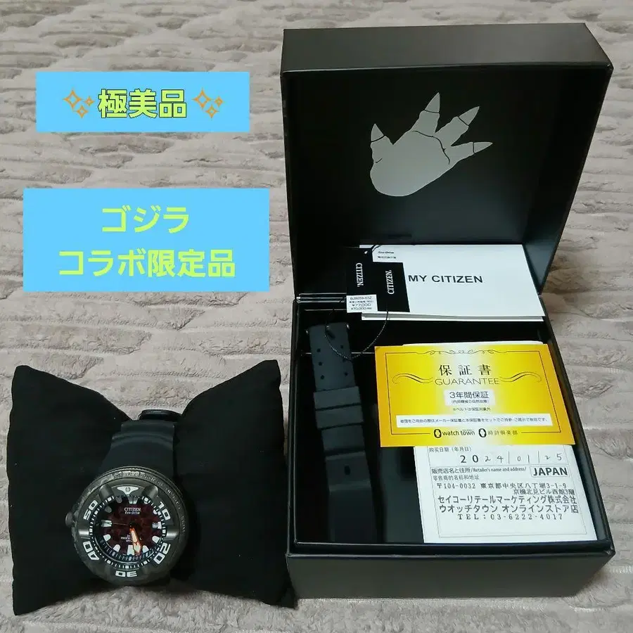 2024년 1월 25일 구매, 1일 사용 후 실내에서 컬렉션으로 보관 중입니다. 개인적인 눈으로는 흠집이나 얼룩은 보이지 않지만, 사진으로 잘 확인하신 후 구매해 주세요. 부속품은 모두 갖추어져 있습니다. 궁금한 점이 있으시면 부담없이 댓글 달아주세요. CITIZEN 시티즌 PROMASTER 프로 마스터 MARINE 마린 광발전 에코 드라이브 프로페셔널 다이버 300m BJ8059-03Z 세계 한정 3,000개 일본이 낳은 세계적인 괴수 [고질라]와 프로 마스터의 콜라보. 극한의 환경에서도 사용할 수 있는 견고함과 시인성을 갖춘 포화 잠수 사양의 스펙, 프로 마스터다운 투박한 디자인을 살린 한정판 모델입니다. 다이얼과 케이스에는 고질라의 피부를 이미지한 카모플라쥬 패턴을 디자인했습니다. 케이스의 패턴은 레이저 가공으로 표현했습니다. 자세히 보면 카모플라쥬 패턴의 일부에 악센트로 작은 고질라가 숨겨져 있습니다. 밴드는 소재 일부에 바이오매스를 배합한 우레탄을 채용했습니다. 케이스 백에는 콜라보의 증거로 고질라의 발자국을 본뜬 각인. 다이얼 컬러는 에너지가 활성화되어 분노한 고질라를 이미지한 다크 레드입니다. 광발전: 6개월 300m 포화 잠수용 방수 두께: 18.5mm / 가로 길이: 48.2mm 유리: 구면 크리스탈 유리 케이스: 스테인리스 도금 (그레이 색상) 밴드 (소재) 우레탄 (바이오매스 포함) (폭) 폭: 32.0mm (잠금) 버클 부가 사양: 내자 1종, 야광 (바늘+인덱스), 역회전 방지 베젤, 나사 잠금 류즈 한정 BOX 포함 연장 밴드 포함 다이얼 컬러 - 레드 벨트 컬러 - 블랙 부속품 - 상자, 보증서, 책자 작동 - 양호 흠집, 균열 등 - 없음 # 시티즌 # CITIZEN # 고질라 # GODZILLA # 콜라보 # 한정품 # 다이버 # 솔라 발전 # 손목시계