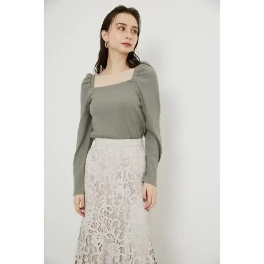 [ 새상품급 ] rienda 퍼프 숄더 컷 TOP GRN