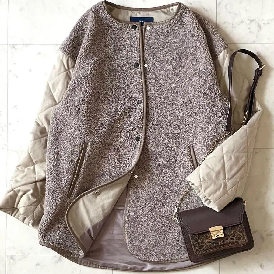 자동 번역되었어요. 원문보기전체 안감의 노카라 보아 퀼팅 코트.