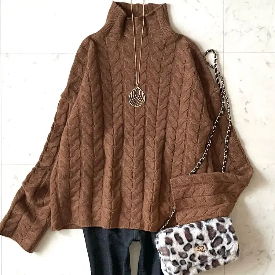 새상품급 Theory 띠어리 울 케이블 무늬 니트 S 브라운 하이넥