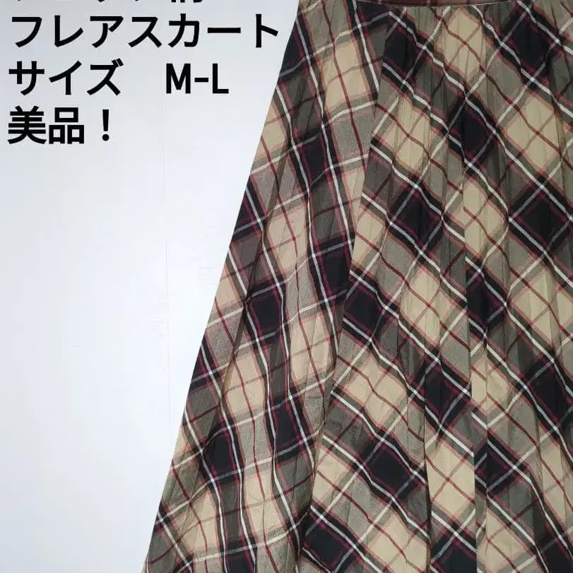 자동 번역되었어요. 원문보기체크 무늬 플레어 스커트, M-L 사이즈로 아름다운 디자인.