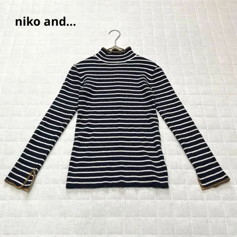 [니코앤드] 리브 니트 풀오버 보더 스트레치 네이비 L