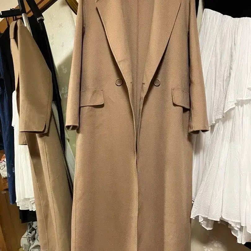 베이지 더블 버튼 롱 코트