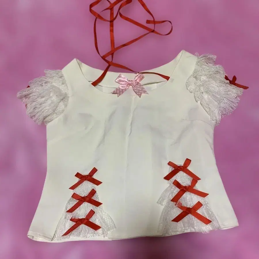 Swankiss 프릴 소매 리본 장식 반팔 상의