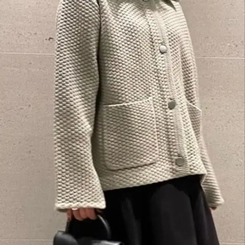 격식 있는 자리에도 대응 가능. 트위드처럼 보이는 고급스러운 카라 부착 니트 자켓
