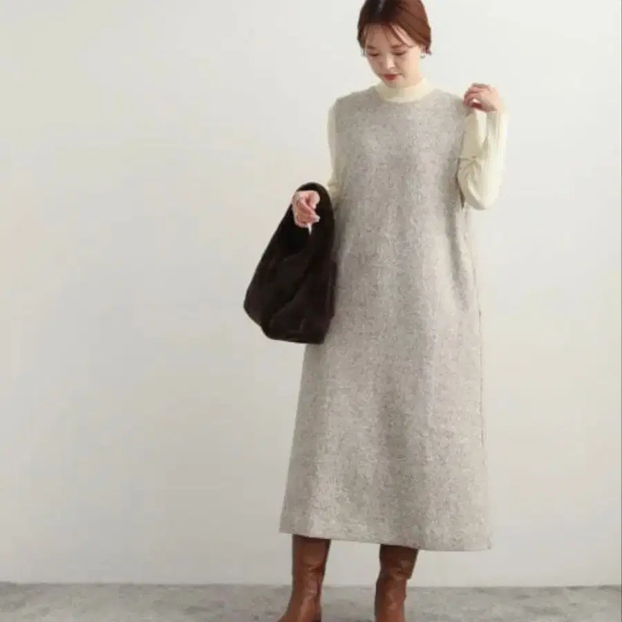어반 리서치 울 혼방 부클 컷 오버롤 스커트 베이지