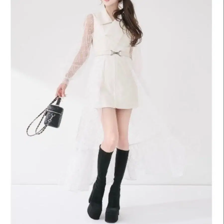허리 부분의 지퍼로 롱 스커트를 탈부착할 수 있는 2Way 사양으로, 화려한 롱 원피스로도, 트렌디한 미니 원피스로도 연출할 수 있는 다용도 디자인입니다.