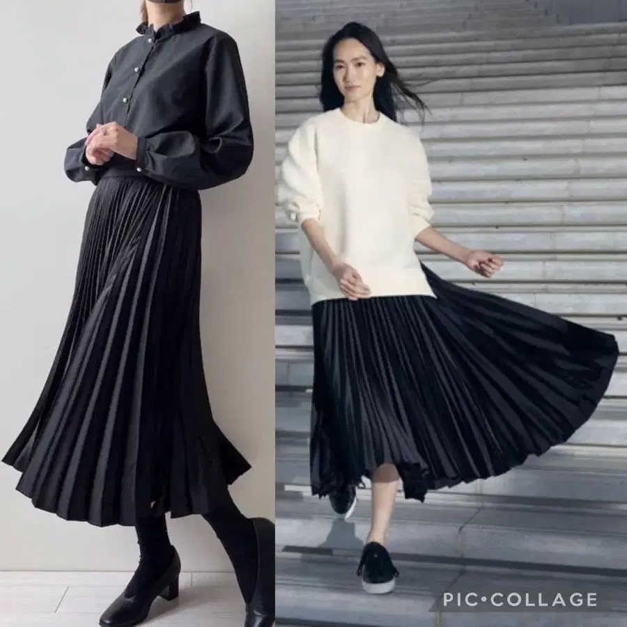 유니클로 theory XXL 빅 사이즈 허리밴딩 플리츠 랩스커트 블랙