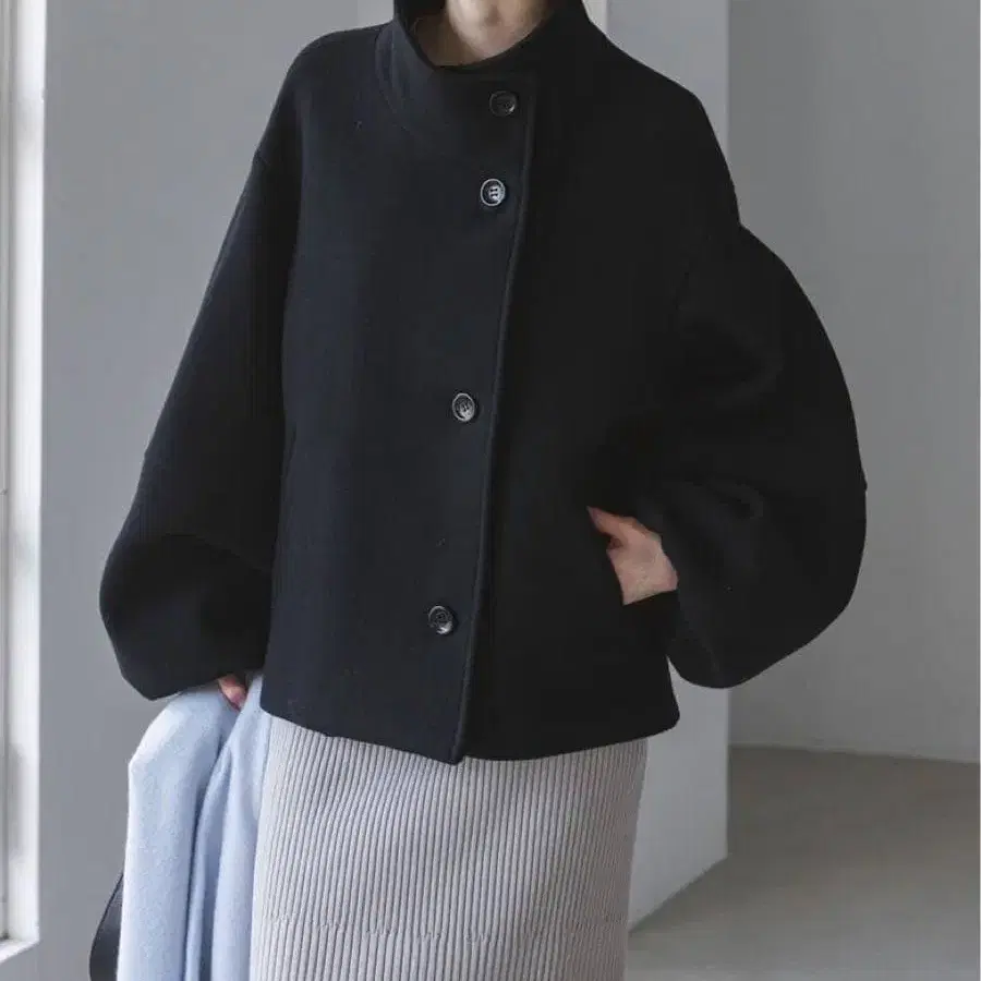 멜톤 원단 특유의 탄력을 최대한 살린 볼륨감 있는 퍼프 슬리브가 포인트이며, 소매 끝에 밴딩을 넣어 소매 볼륨감을 더욱 살렸습니다.