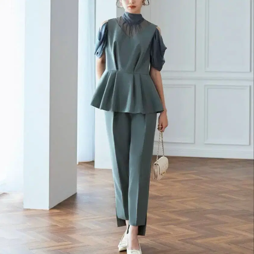 오픈 숄더 상의 & 팬츠 드레스 셋업 결혼식 경사 드레스