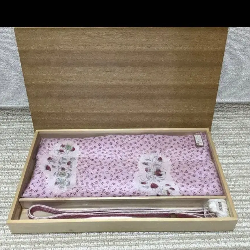 오동나무 상자형 새상품급! 고급 꽃무늬 핑크 오비 장식 천과 허리띠 세트