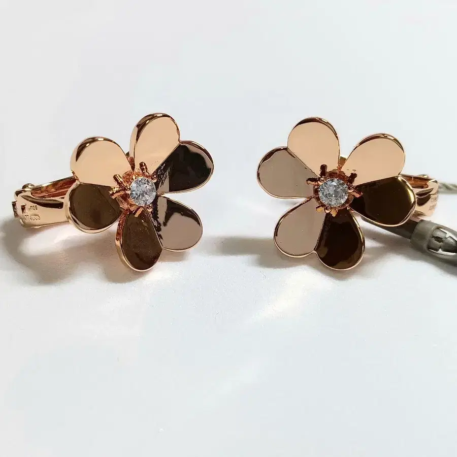 1스톤 부착 세잎클로버 귀걸이 핑크 골드 컬러